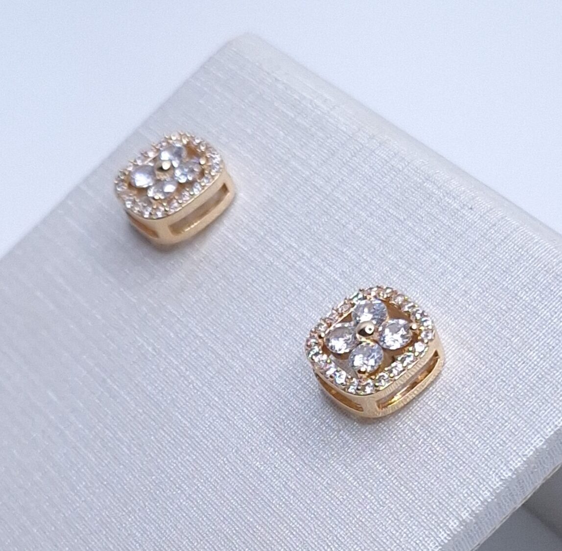 Brinco quadrado flor zircônia cravejado microzircônia B. Ouro 18k