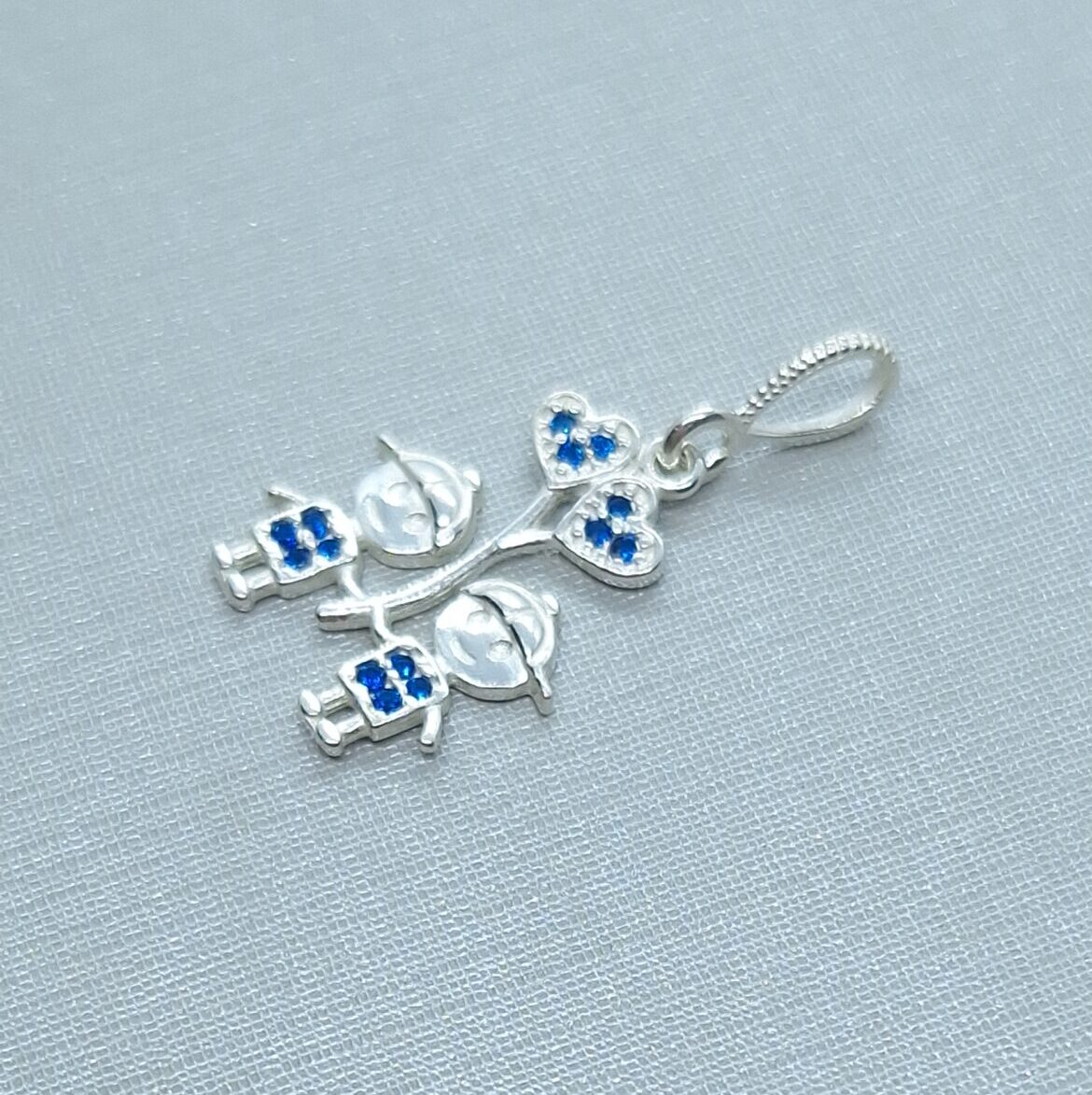 Seja o primeiro a avaliar “Pingente 2 Meninos com balão cravejado zircônia azul 15mm Prata 925”